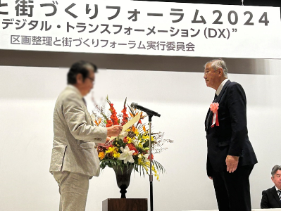 土地区画整理事業の推進に顕著な功績があったと認められる個人として、弊社社員が受賞しました。